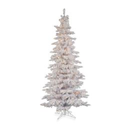 Slim Flocked Christmas Tree With Colored Lights
